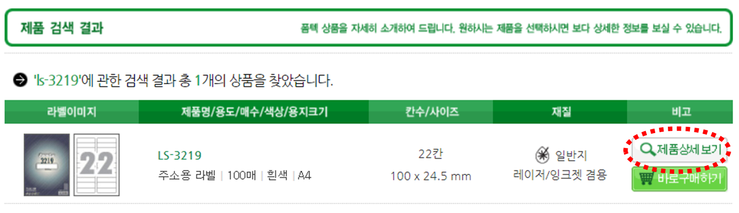 2. 오른쪽에서 원하는 라벨지 번호 입력 후 검색